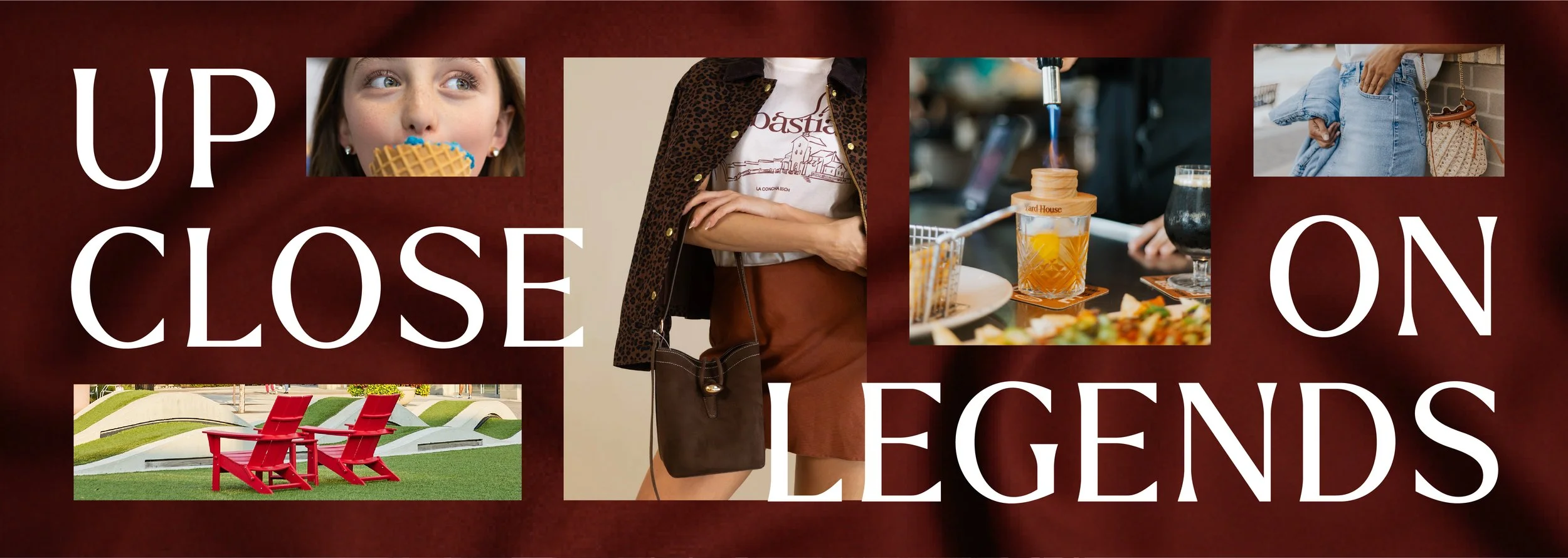 More than shopping, more than dining, at Legends Outlets you’re part of it all, with the sights, sounds, tastes, and scents of a great time right at your fingertips. This year-round campaign highlights what it feels like to be immersed in the atmosphere of Legends, focusing on the five senses in the messaging and the visuals. This was also extended to a holiday specific execution. Photography is simple with tight shots that highlight texture complimented with clean, simple graphics and copy that emphasizes sensory feeling.