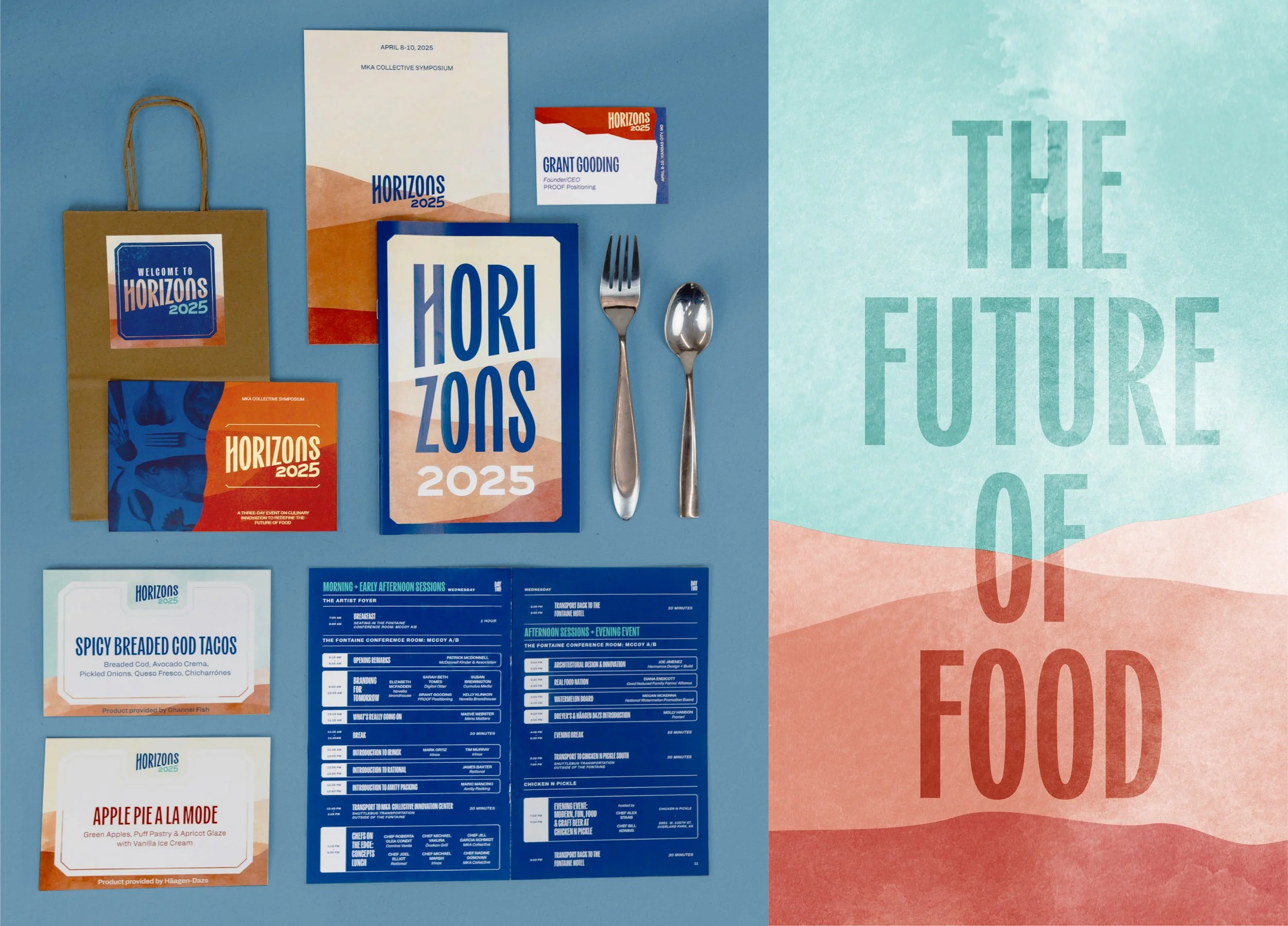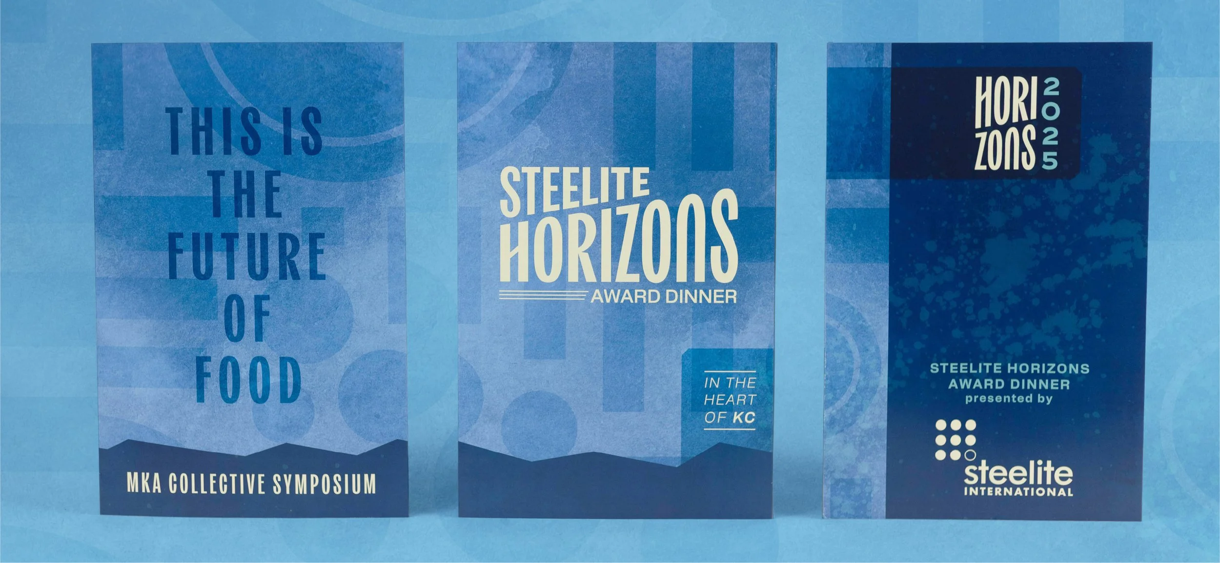 Horizons is a three day symposium for restaurant industry professionals designed to celebrate culinary and beverage innovation. The visual brand worked to blend the historic charm of Santa Fe, New Mexico with the modern energy of the new host city, Kansas City, Missouri. An additional sub brand system was created for the Steelite Horizons Award Dinner at the end of the conference.